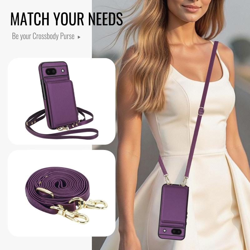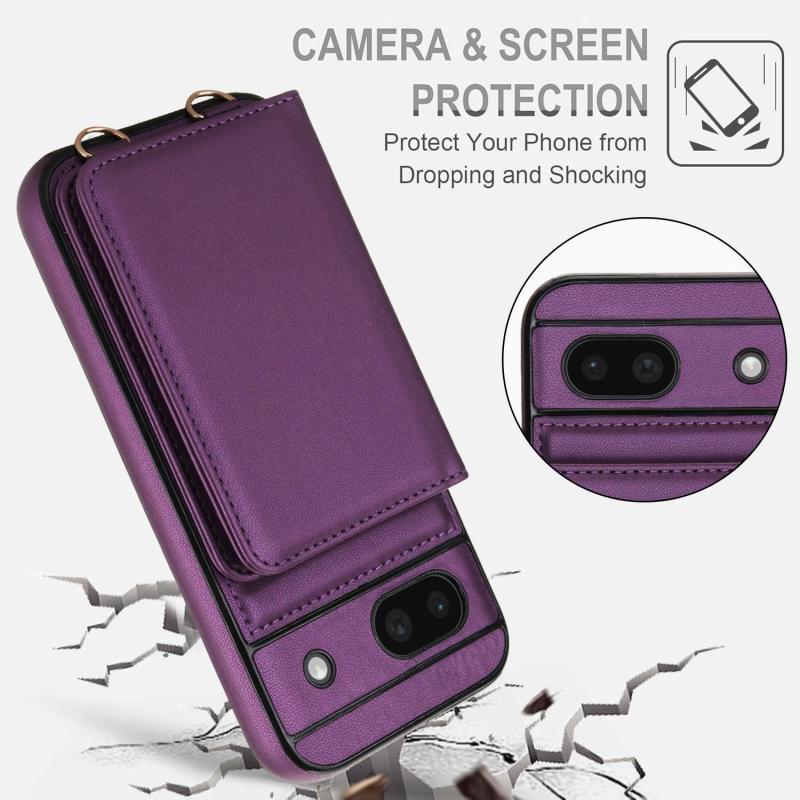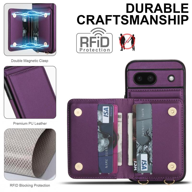 For Google Pixel 8a Crossbody Dual-buckle Wallet RFID Back Leather Phone Case(Dark Purple)