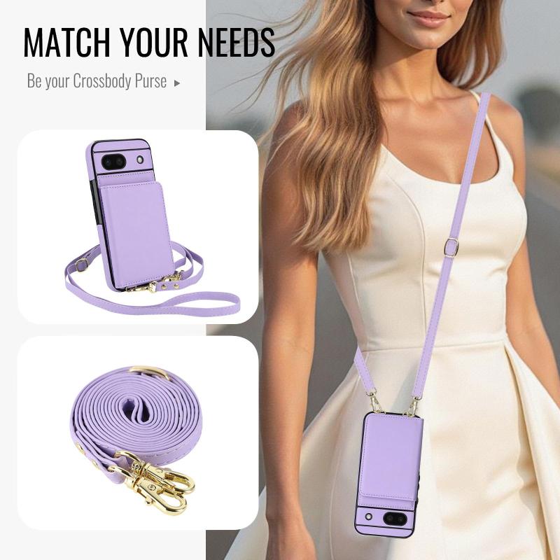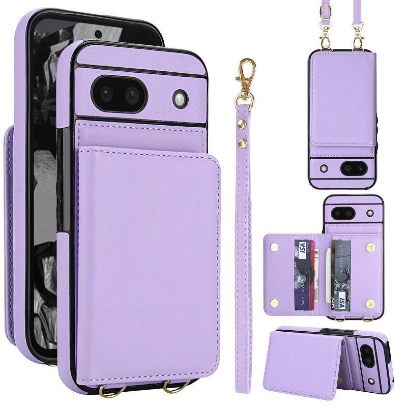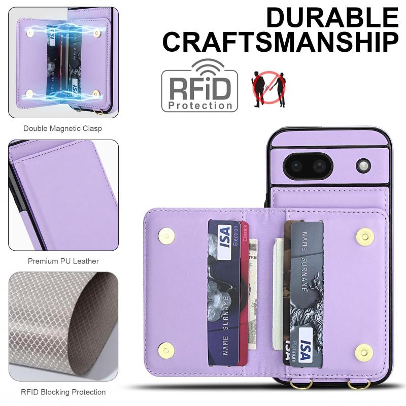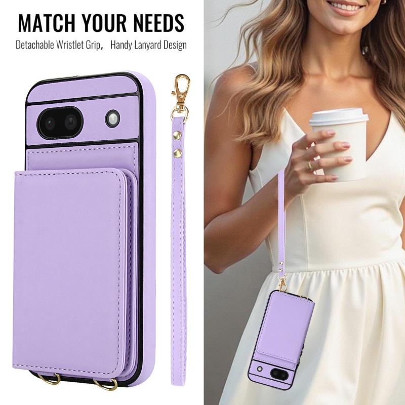 For Google Pixel 8a Crossbody Dual-buckle Wallet RFID Back Leather Phone Case(Light Purple)