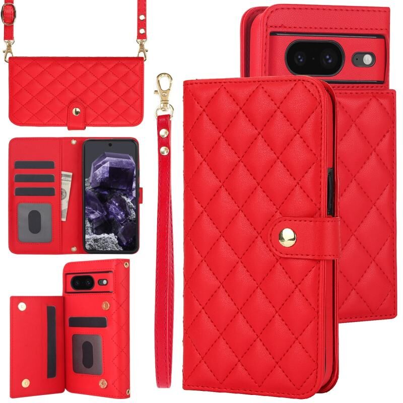 Για το Google Pixel 8a Crossbody Πολυλειτουργική θήκη τηλεφώνου από δέρμα (κόκκινο)