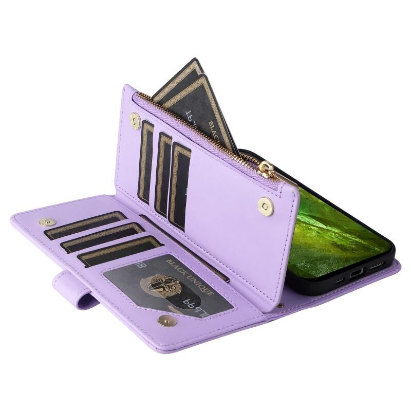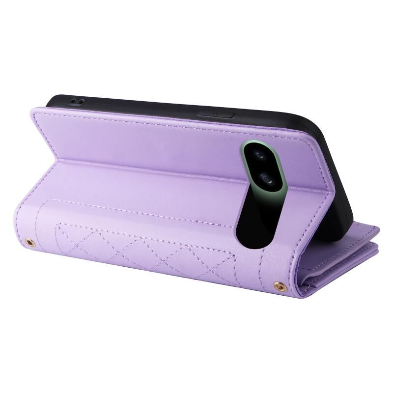 Για το Google Pixel 8a Crossbody φερμουάρ πορτοφόλι Rhombus δερμάτινη θήκη τηλεφώνου (μωβ)
