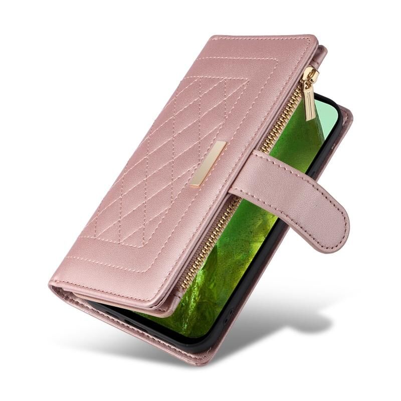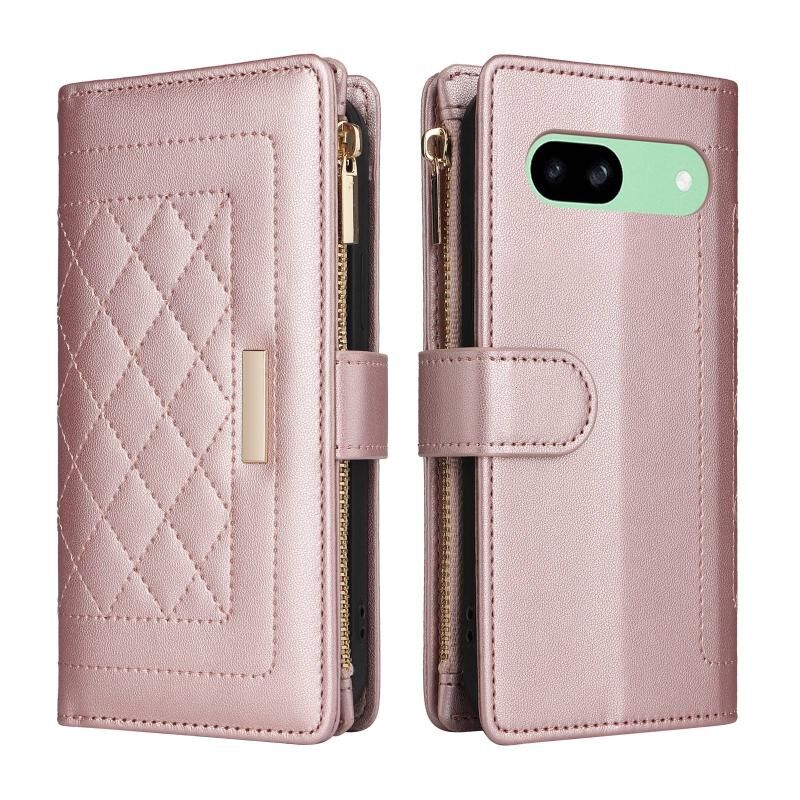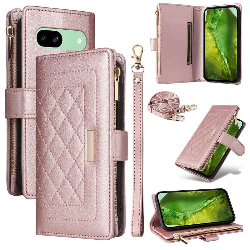 Για το Google Pixel 8a Crossbody φερμουάρ πορτοφόλι Rhombus δερμάτινη θήκη τηλεφώνου (ροζ χρυσό)