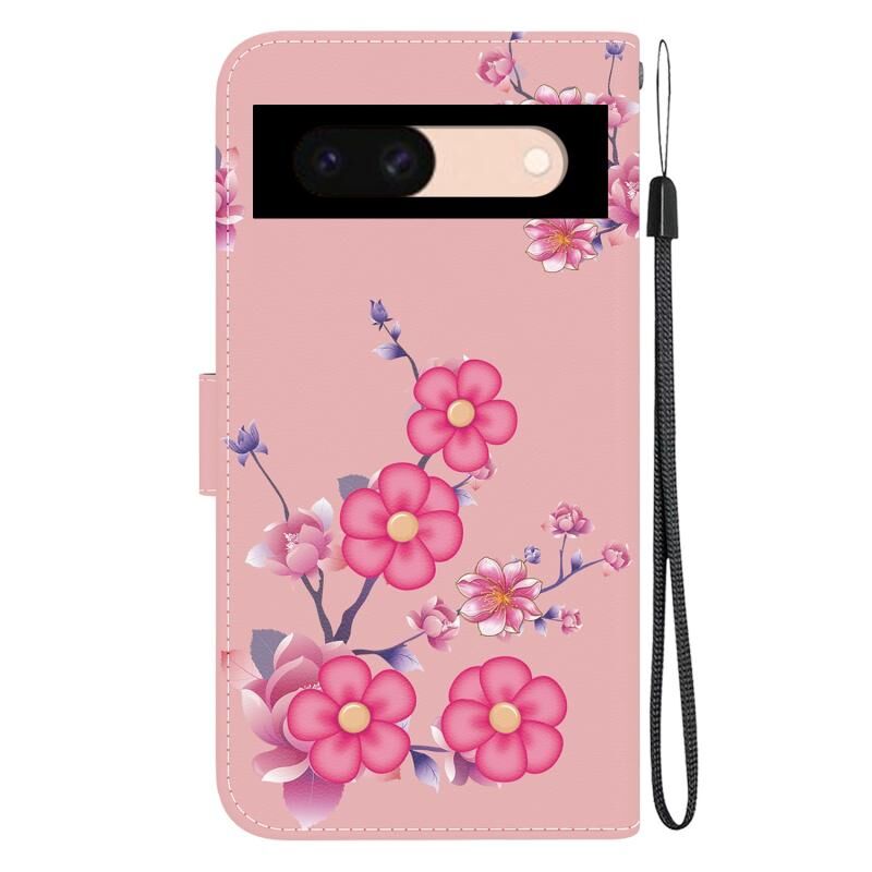 For Google Pixel 8a Crystal Texture Colored Drawing Leather Phone Case(Cherry Blossoms)