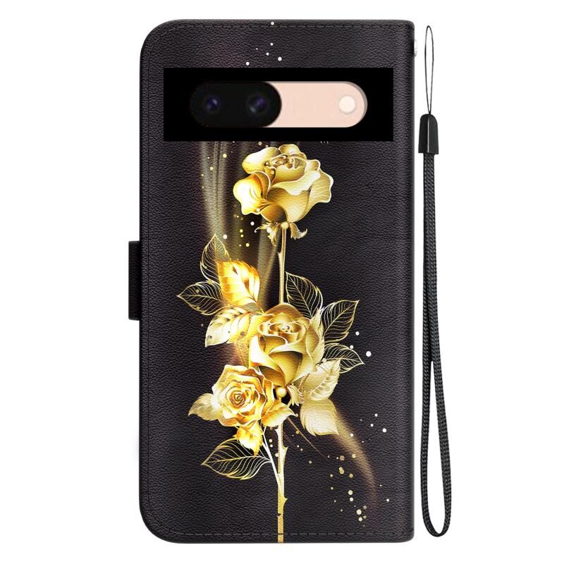 For Google Pixel 8a Crystal Texture Colored Drawing Leather Phone Case(Gold Butterfly Rose)