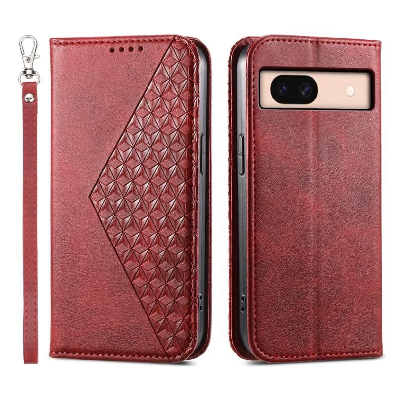 For Google Pixel 8a Cubic Grid Calf Texture Magnetic Leather Phone Case(Red)
