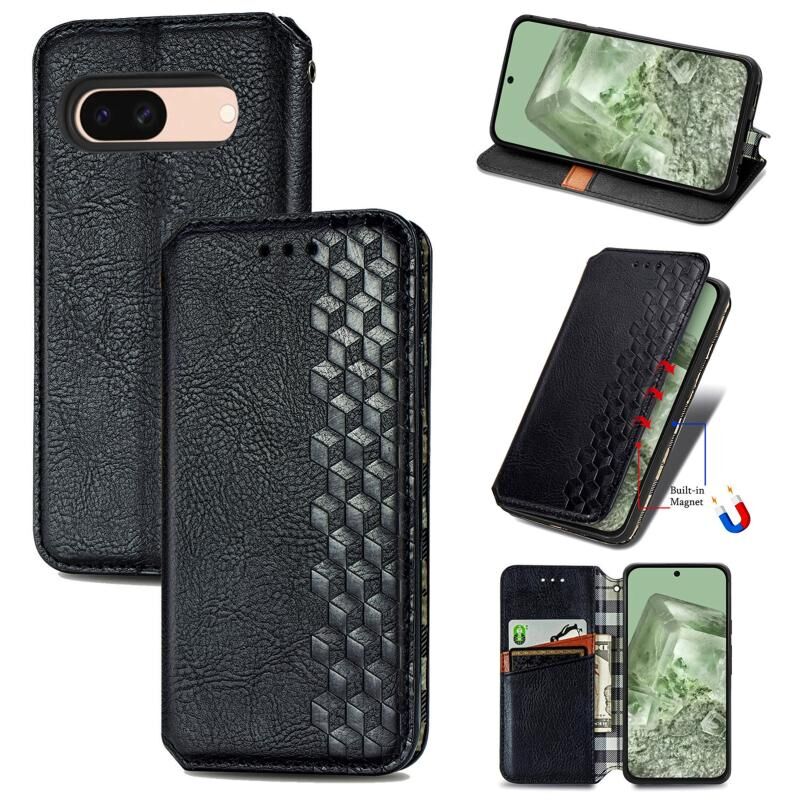 For Google Pixel 8a Cubic Grid Pressed Magnetic Leather Phone Case(Black)