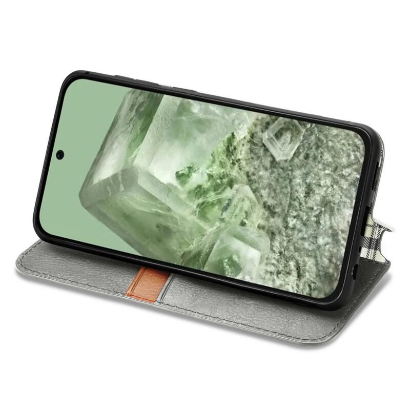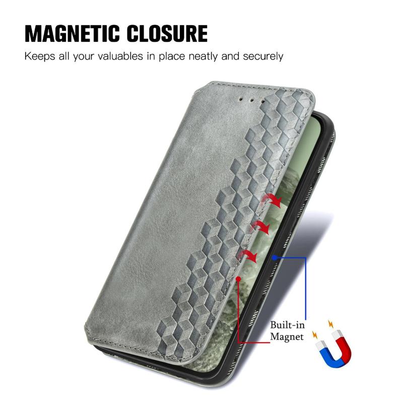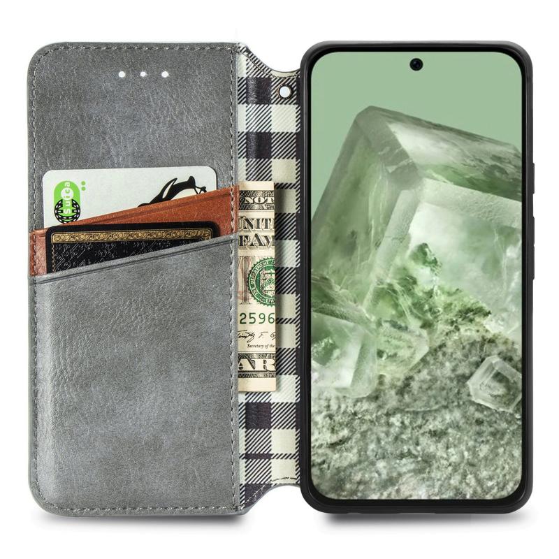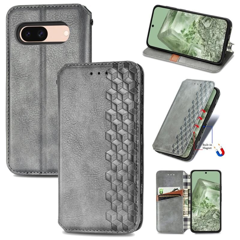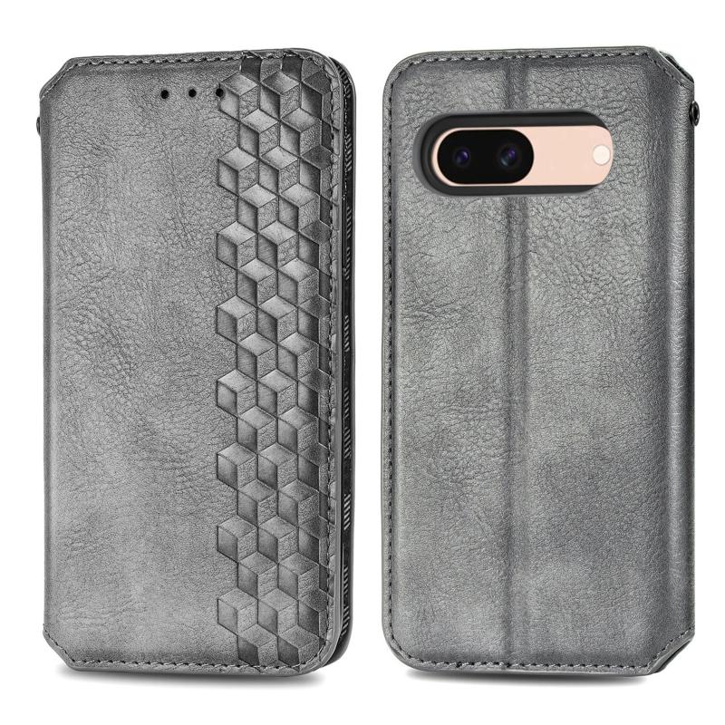 For Google Pixel 8a Cubic Grid Pressed Magnetic Leather Phone Case(Gray)