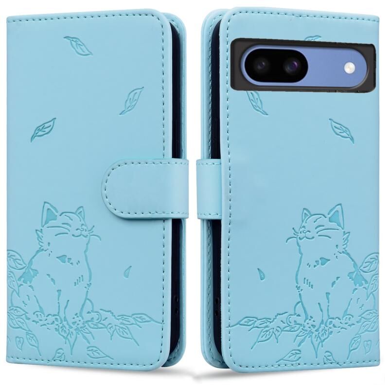 Θήκη τηλεφώνου από δέρμα με ανάγλυφο χαριτωμένο γατάκι για Google Pixel 8a (Πράσινο)