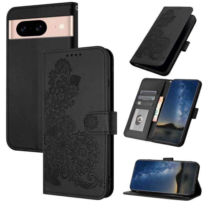 For Google Pixel 8a Datura Flower Embossed Flip Leather Phone Case(Black)