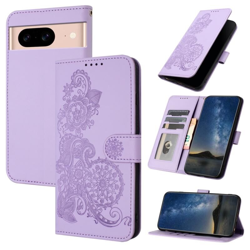 For Google Pixel 8a Datura Flower Embossed Flip Leather Phone Case(Purple)