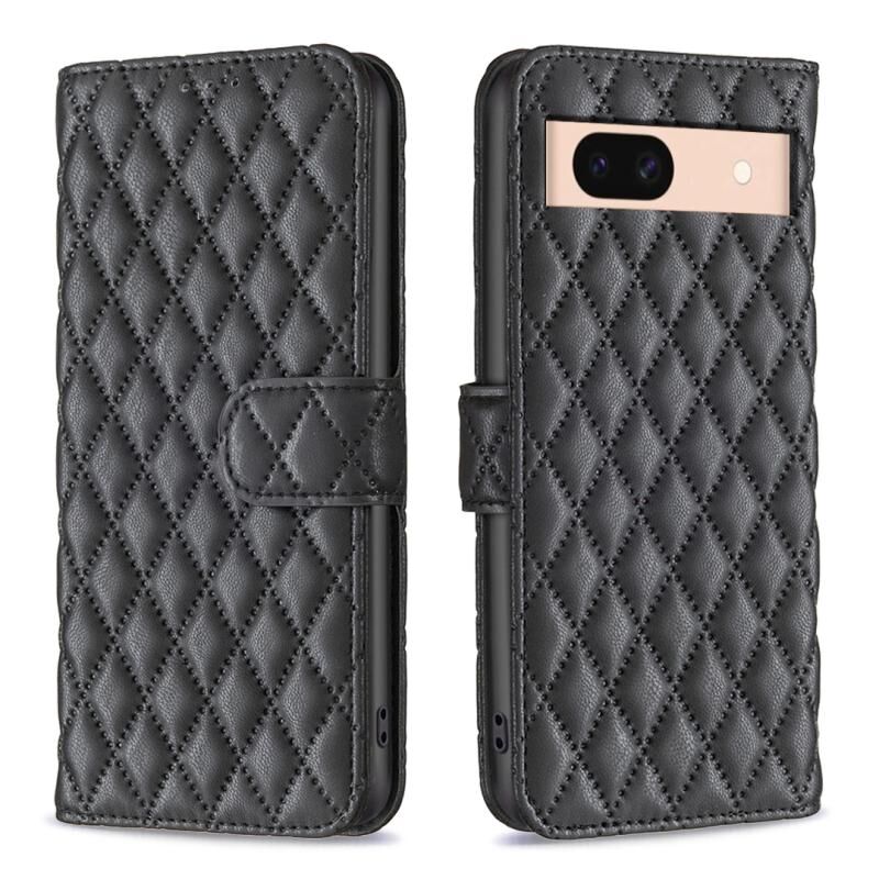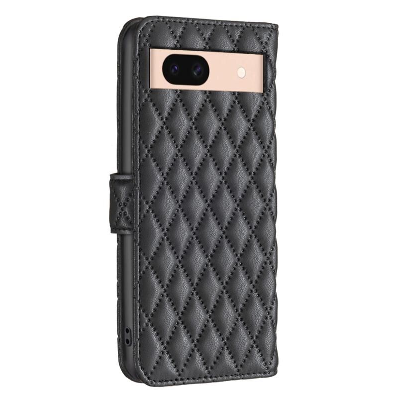 Για το Google Pixel 8a Diamond Lattice πορτοφόλι δέρμα Flip υπόθεση τηλεφώνου (μαύρο)