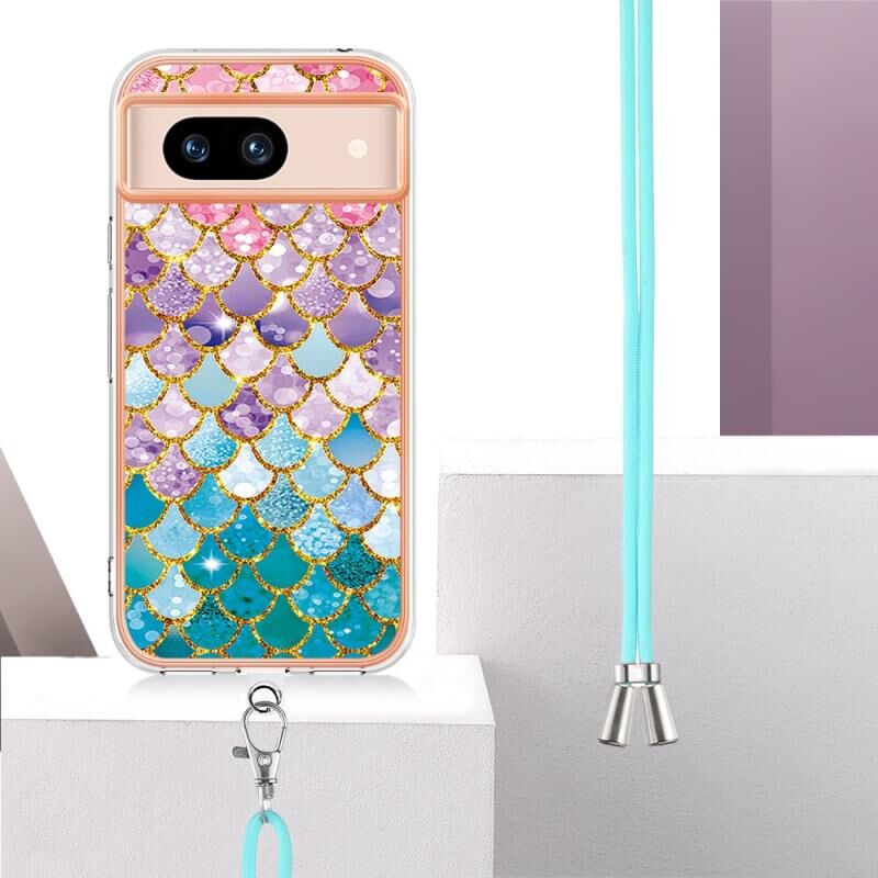 For Google Pixel 8a Electroplating IMD TPU Phone Case with Lanyard(Colorful Scales)