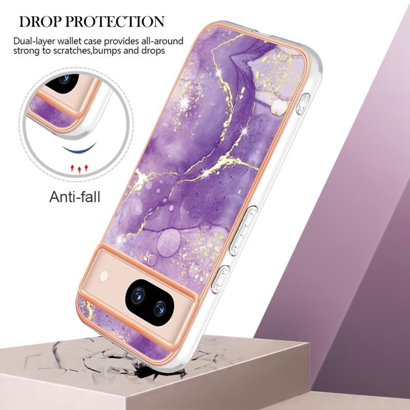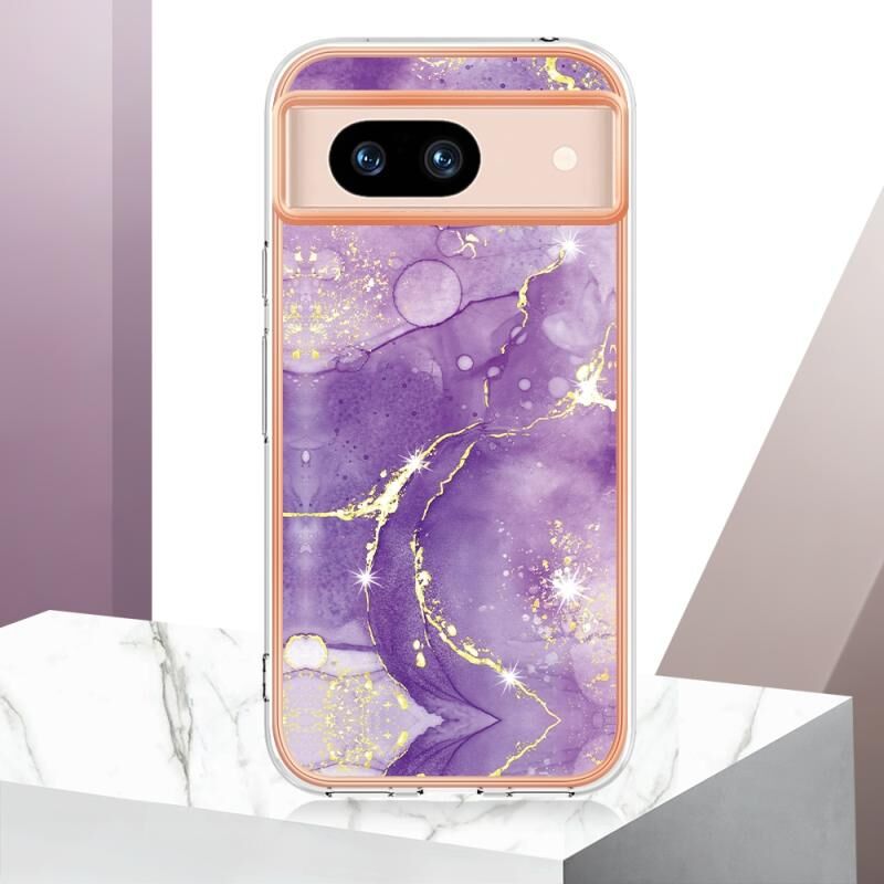 Θήκη τηλεφώνου Google Pixel 8a Επιμετάλλωση Μαρμάρου Διπλής Όψης IMD (Μωβ 002)