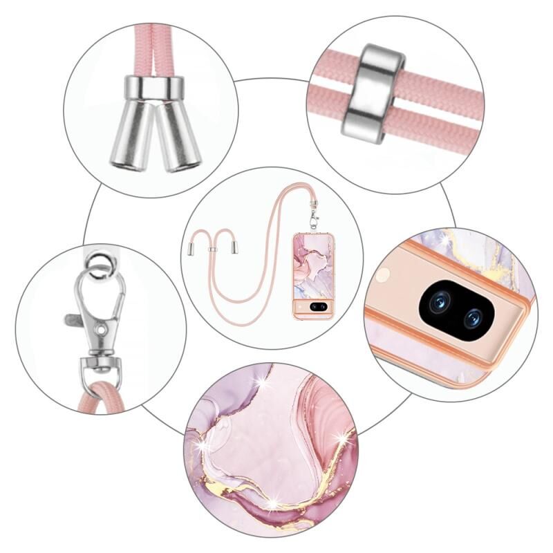 For Google Pixel 8a Electroplating Marble Dual-side IMD Phone Case with Lanyard(Rose Gold 005)