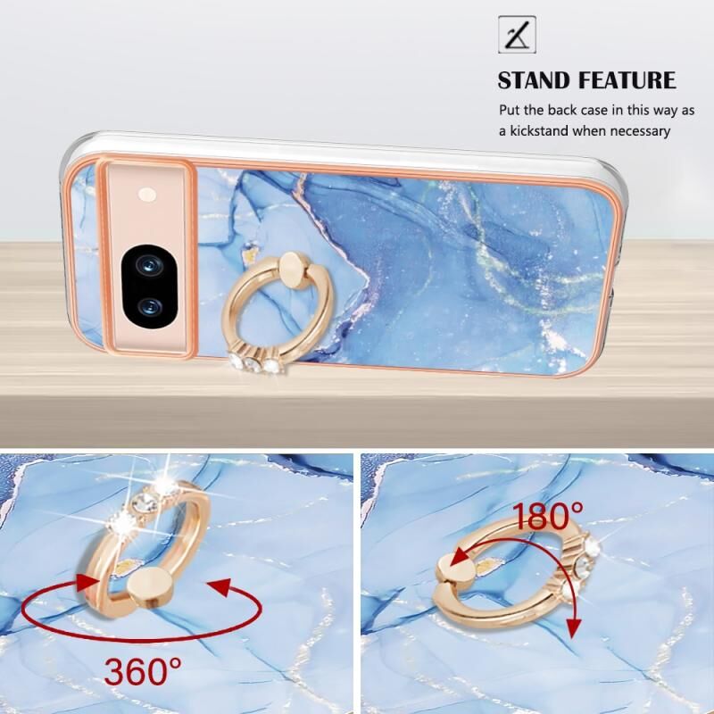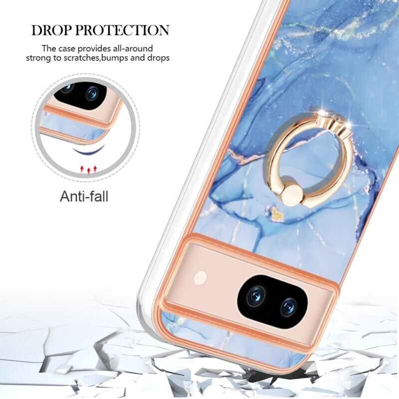 Θήκη τηλεφώνου για Google Pixel 8a με ηλεκτρολυτική μαρμάρινη επένδυση IMD διπλής όψης με δακτύλιο (Μωβ 016)