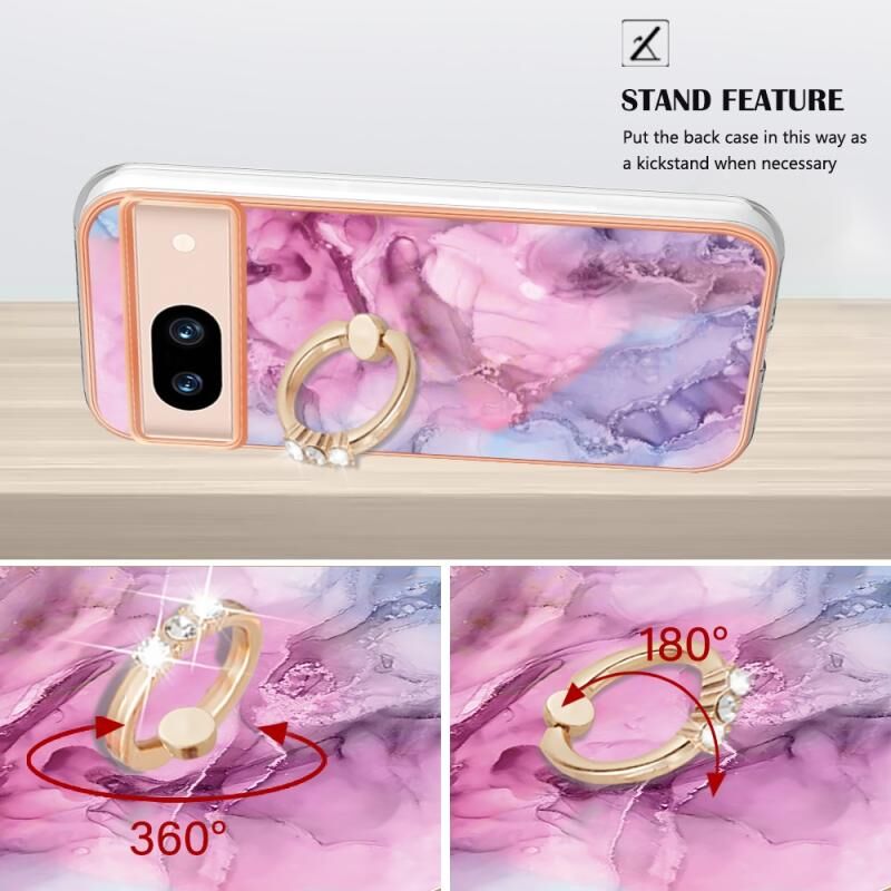 Θήκη τηλεφώνου για Google Pixel 8a με ηλεκτρολυτική μαρμάρινη επένδυση IMD διπλής όψης με δακτύλιο (Μωβ 016)