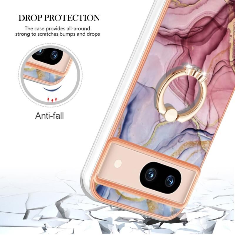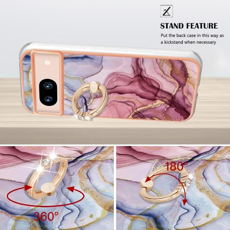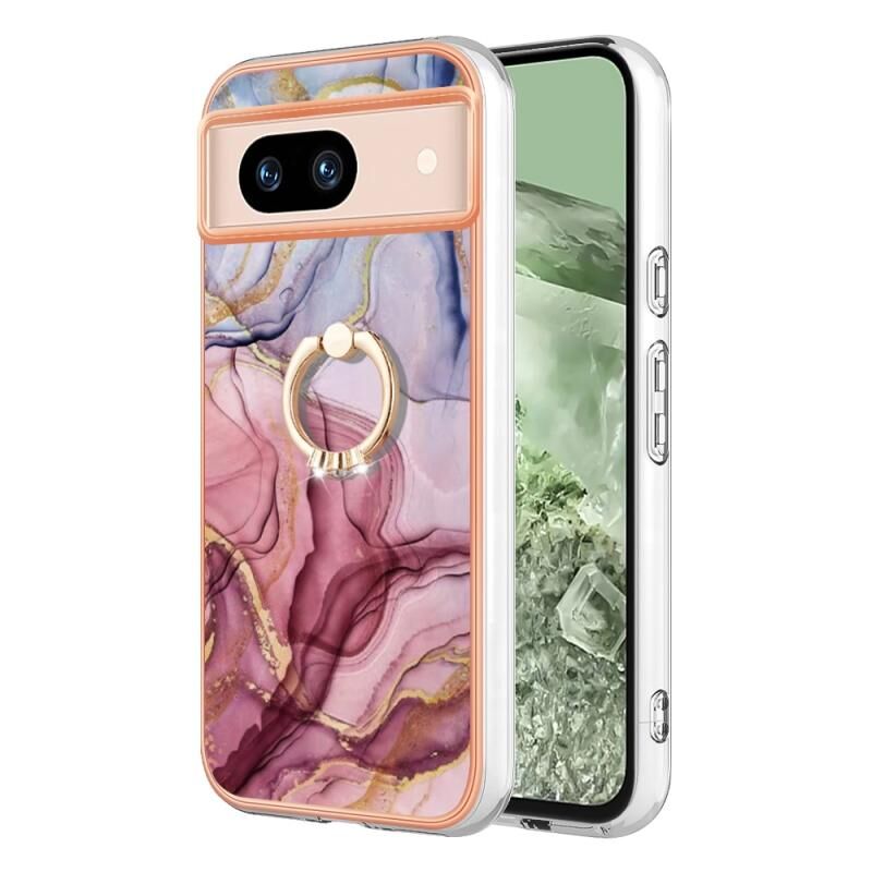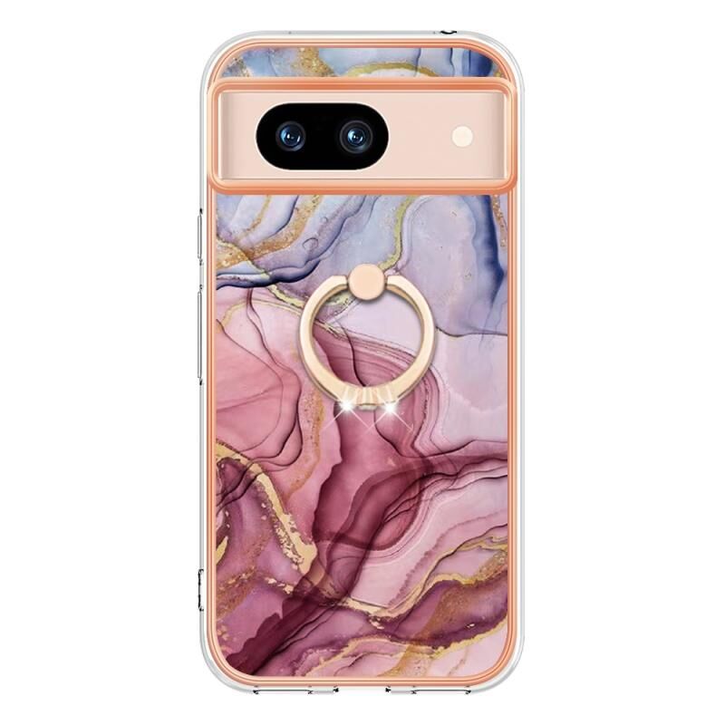 Θήκη τηλεφώνου για Google Pixel 8a με ηλεκτρολυτική μαρμάρινη επένδυση IMD διπλής όψης με δακτύλιο (Μωβ 016)