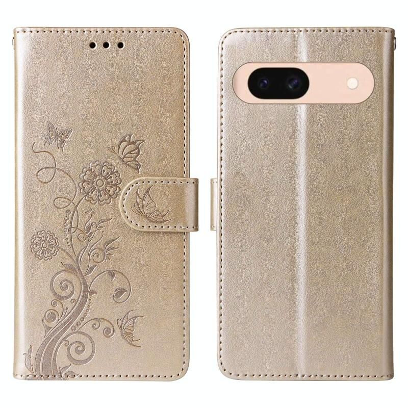 Θήκη τηλεφώνου από δέρμα με ανάγλυφα σχέδια πεταλούδας και λουλουδιών για Google Pixel 8a (Μωβ)