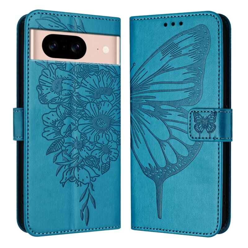 For Google Pixel 8a Embossed Butterfly Leather Phone Case(Blue)