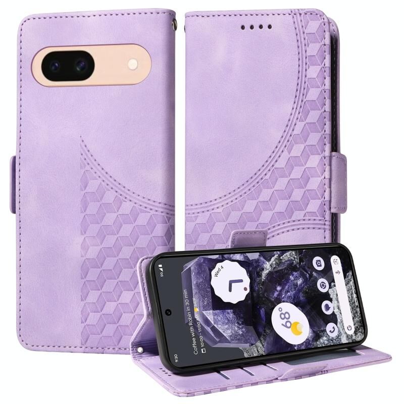 Για το Google Pixel 8a Ανάγλυφη θήκη τηλεφώνου δερμάτινη με αστέρια (μωβ)