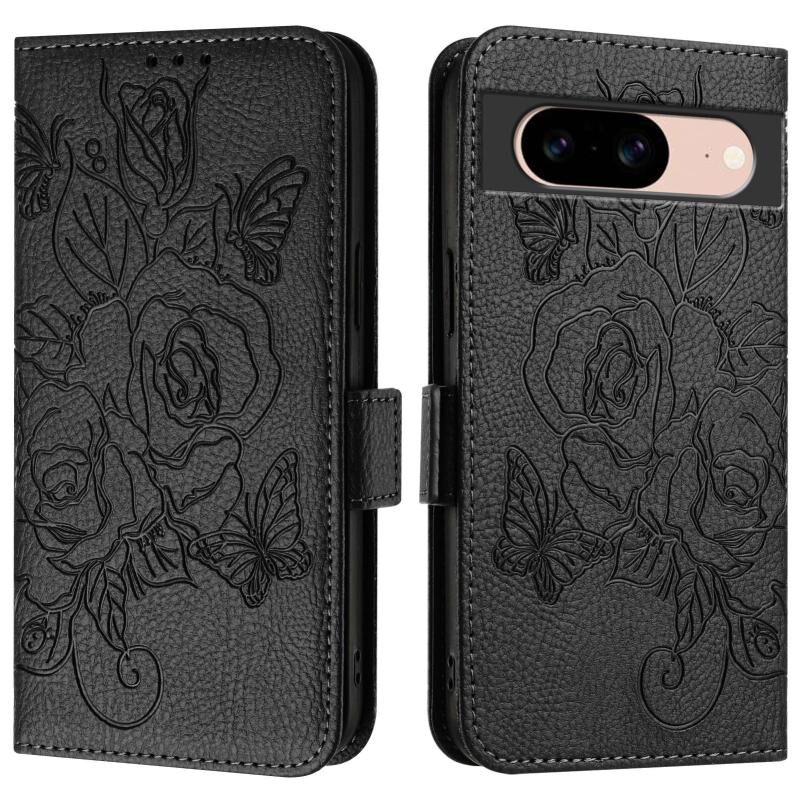 For Google Pixel 8a Embossed Rose RFID Anti-theft Leather Phone Case(Black)