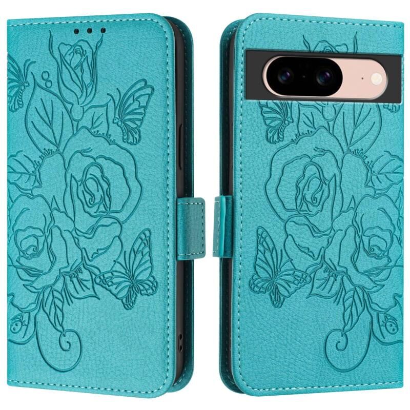 For Google Pixel 8a Embossed Rose RFID Anti-theft Leather Phone Case(Light Blue)