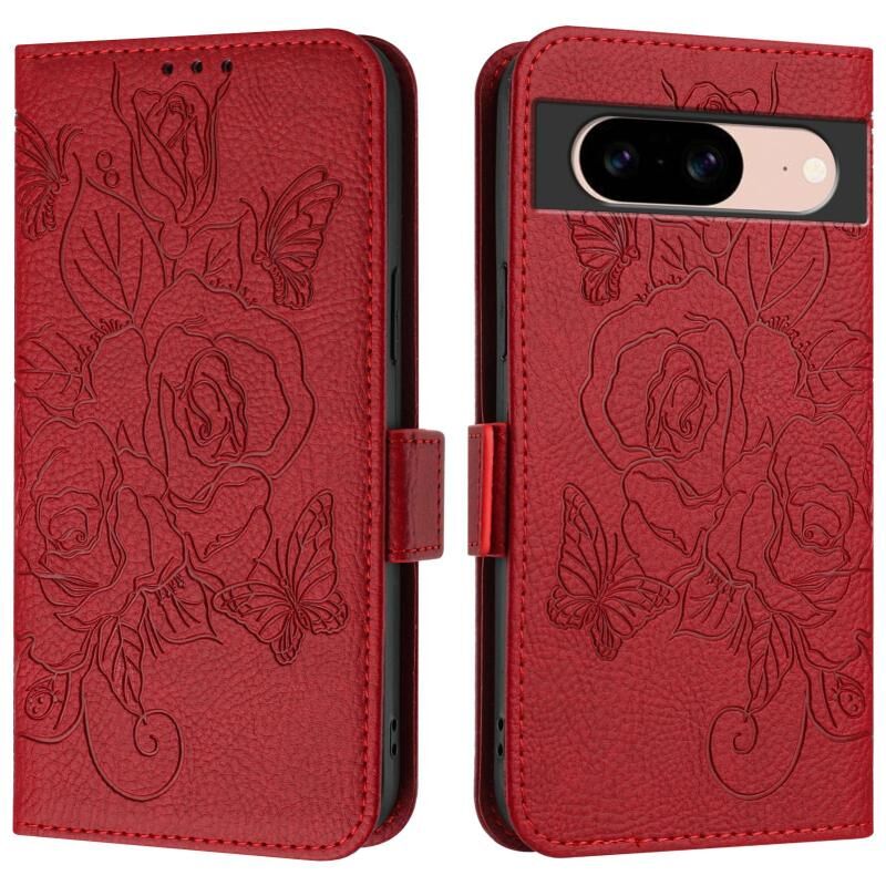 For Google Pixel 8a Embossed Rose RFID Anti-theft Leather Phone Case(Red)