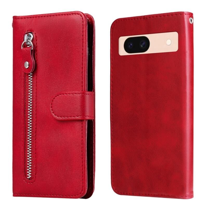 Για Google Pixel 8a Μόδα Calf υφή φερμουάρ δερμάτινη θήκη τηλεφώνου (κόκκινο)