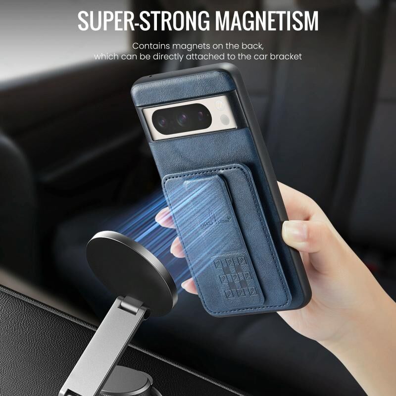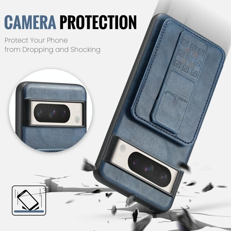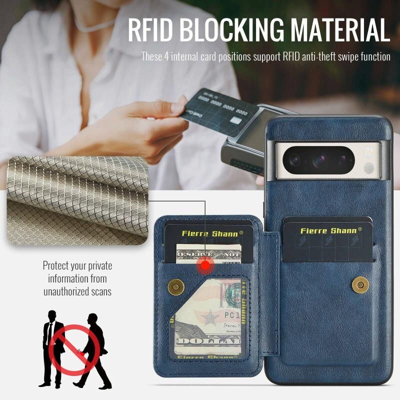 Για το Google Pixel 8a Fierre Shann Oil Wax Cow Leather Card Holder Back Phone Case (Blue) (FIERRE SHANN)