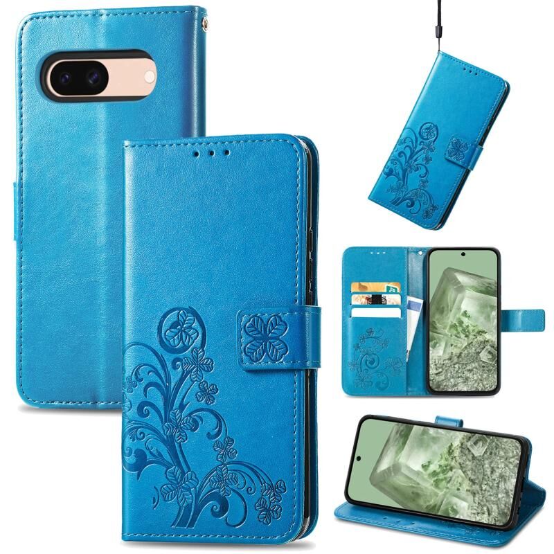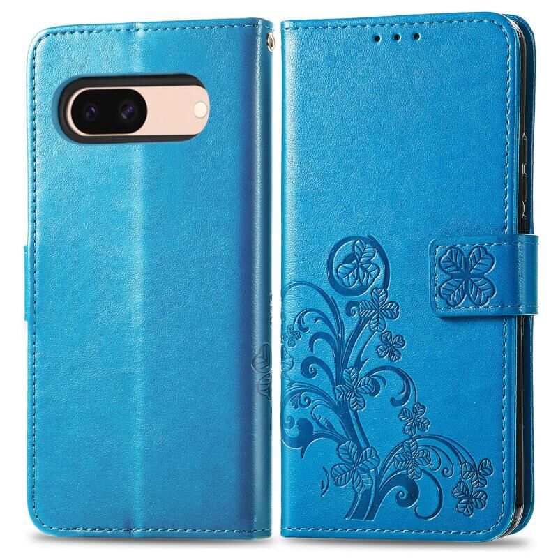 Για το Google Pixel 8a τετράφυλλο κούμπωμα ανάγλυφη δερμάτινη θήκη τηλεφώνου (μπλε)