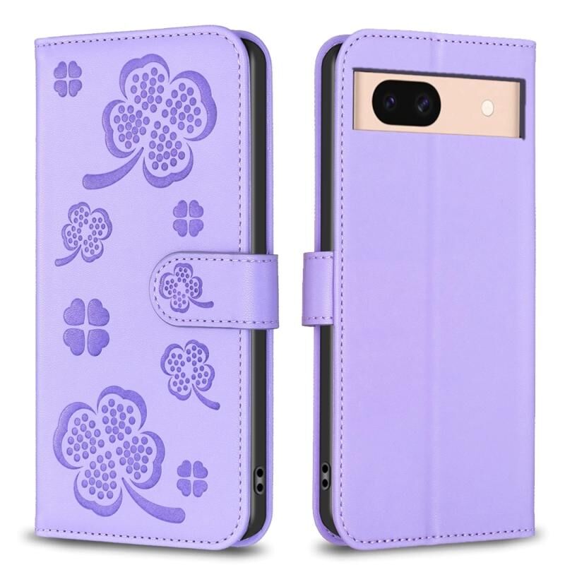 Για το Google Pixel 8a τετράφυλλο ανάγλυφη δερμάτινη θήκη τηλεφώνου (μωβ)