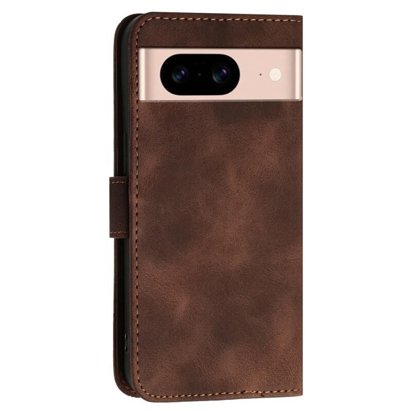 Θήκη τηλεφώνου δερμάτινη με ανάγλυφο σχέδιο πεταλούδας σε πλέγμα για Google Pixel 8a με κορδόνι (Καφέ)