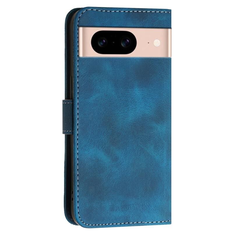 Θήκη τηλεφώνου δερμάτινη με ανάγλυφο σχέδιο πεταλούδας για Google Pixel 8a με κορδόνι (Σκούρο Μπλε)