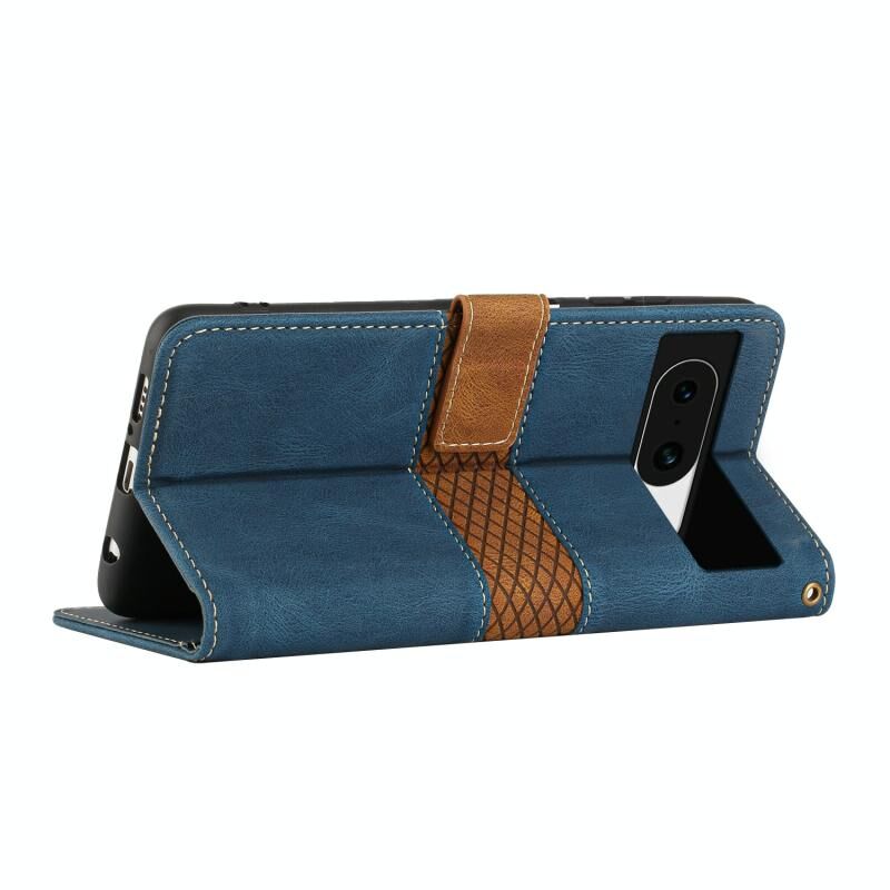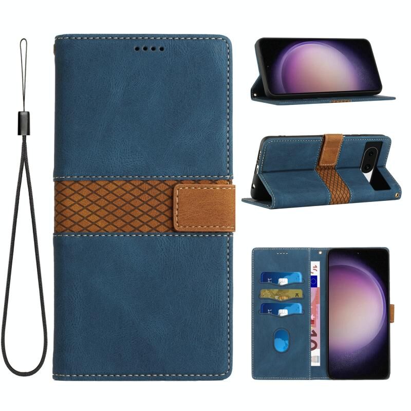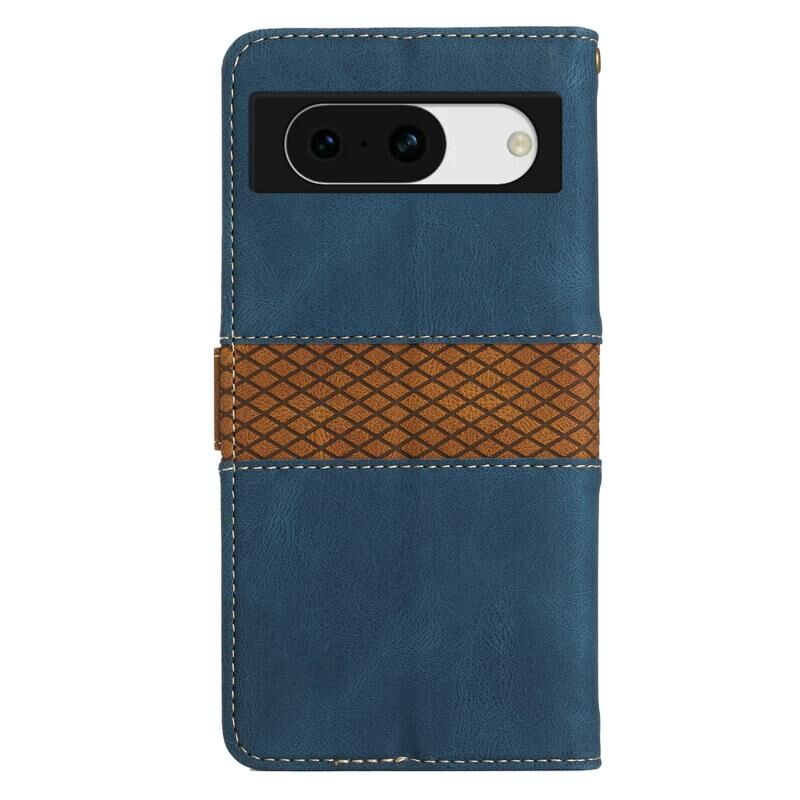 Για το Google Pixel 8a Δερμάτινη θήκη τηλεφώνου με ραφή πλέγματος και κορδόνι (μπλε)