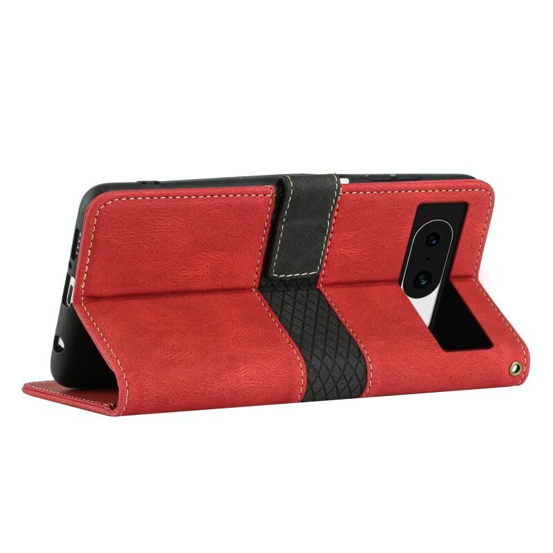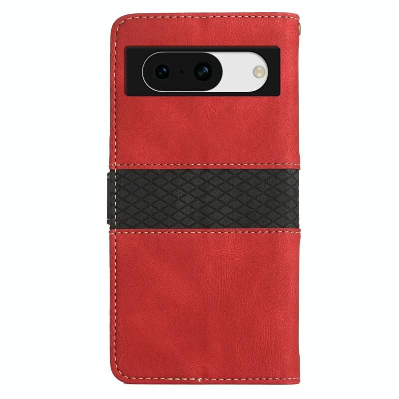 Για το Google Pixel 8a Δερμάτινη θήκη τηλεφώνου με ραφή πλέγματος και κορδόνι (κόκκινο)