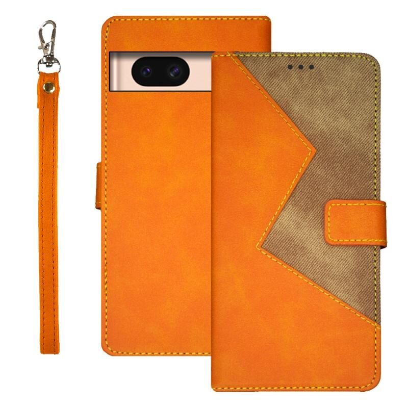 For Google Pixel 8a idewei Two-color Splicing Leather Phone Case(Orange) (idewei)