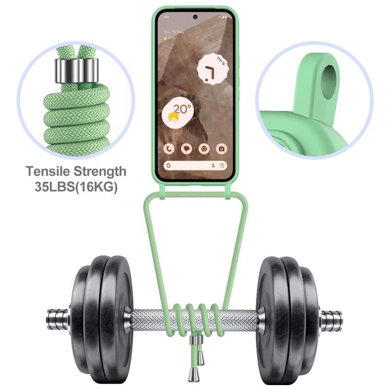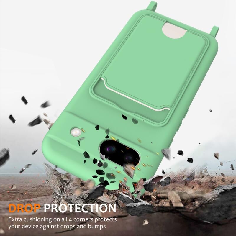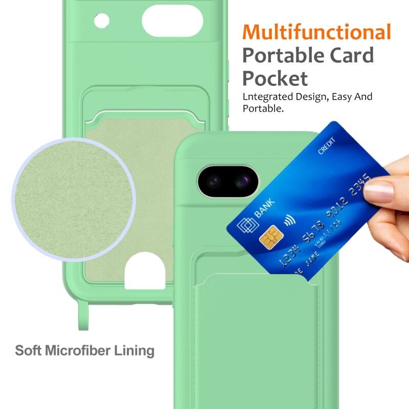 Για το Google Pixel 8a Ενσωματωμένη τσάντα κάρτας Αμιγές χρώμα Υγρή υπόθεση τηλεφώνου σιλικόνης με κορδόνι (πράσινο)