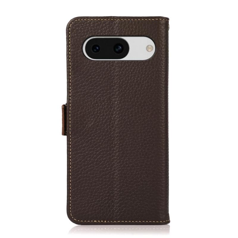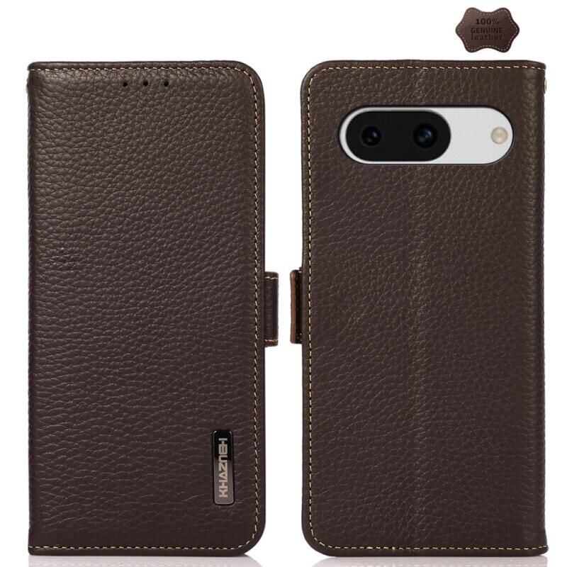 For Google Pixel 8a KHAZNEH Side-Magnetic Litchi Genuine Leather RFID Phone Case(Brown)
