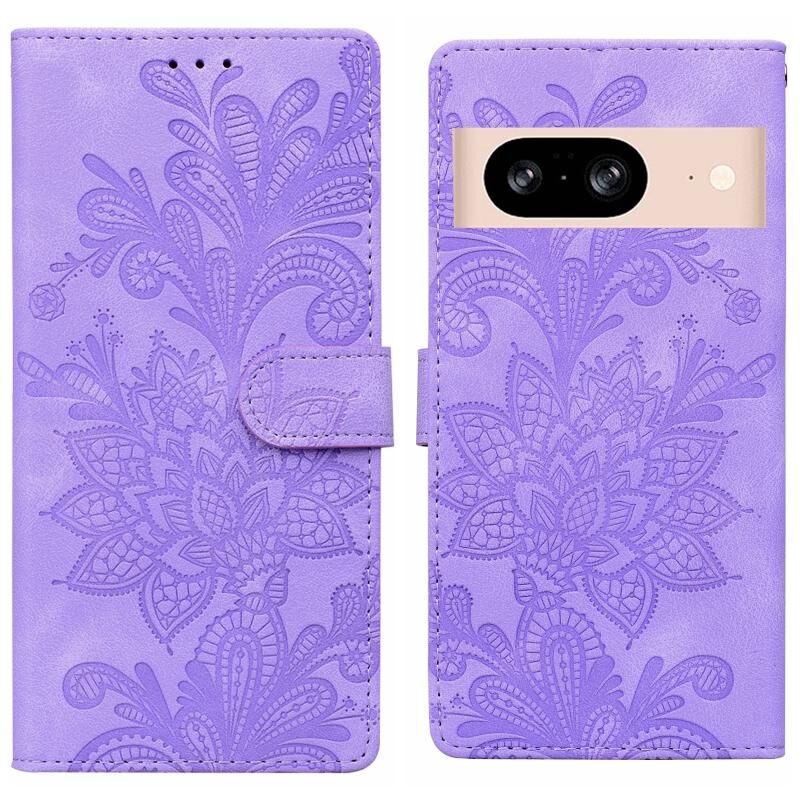 Θήκη τηλεφώνου Google Pixel 8A με σχέδιο δαντέλας και λουλουδιών, ανάγλυφο, με μαγνητικό κούμπωμα και λουρί καρπού (Πράσινο)
