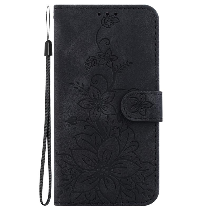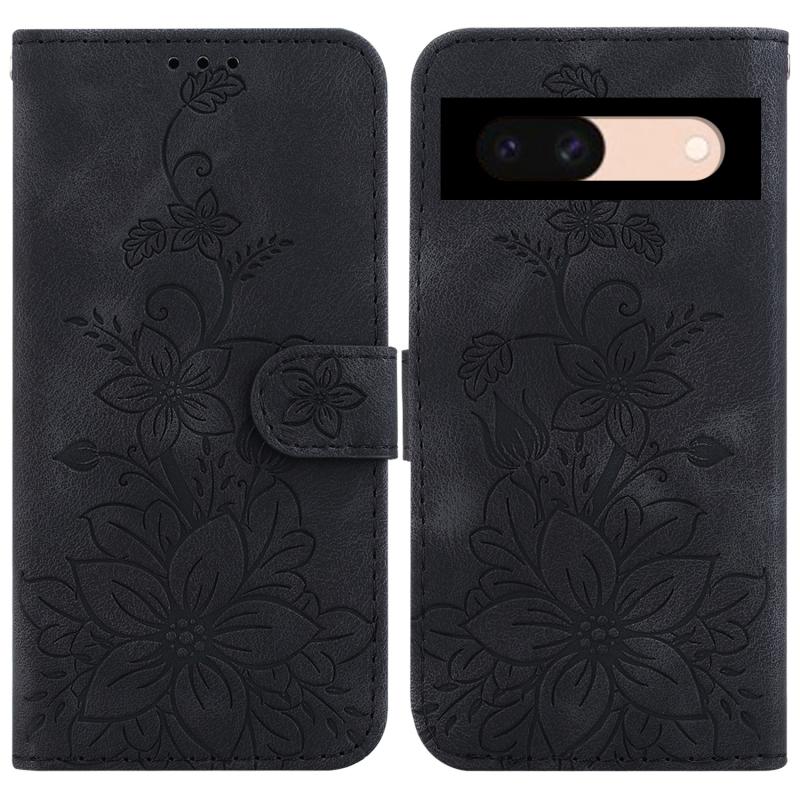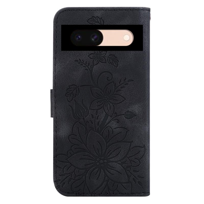 Θήκη τηλεφώνου από δέρμα με ανάγλυφο Lily για Google Pixel 8a (Μαύρο)
