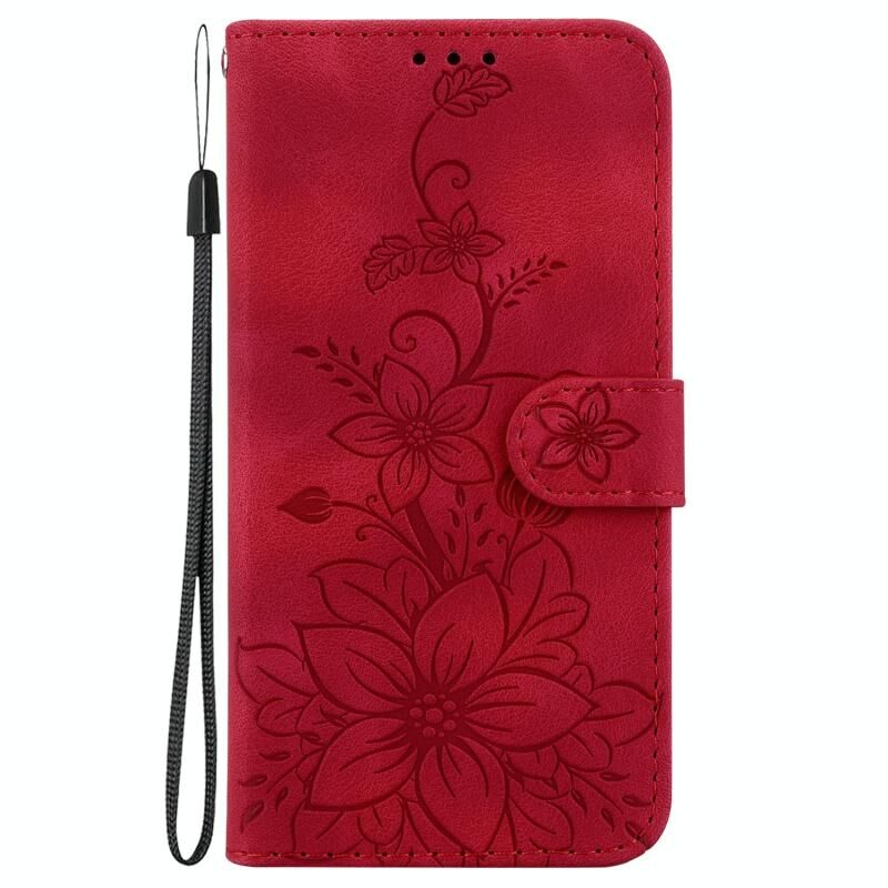 Θήκη τηλεφώνου από δέρμα με ανάγλυφο Lily για Google Pixel 8a (Κόκκινο)