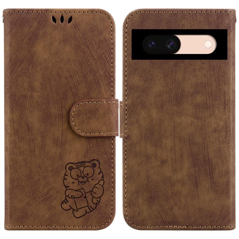 For Google Pixel 8a Little Tiger Embossed Leather Phone Case(Brown)
