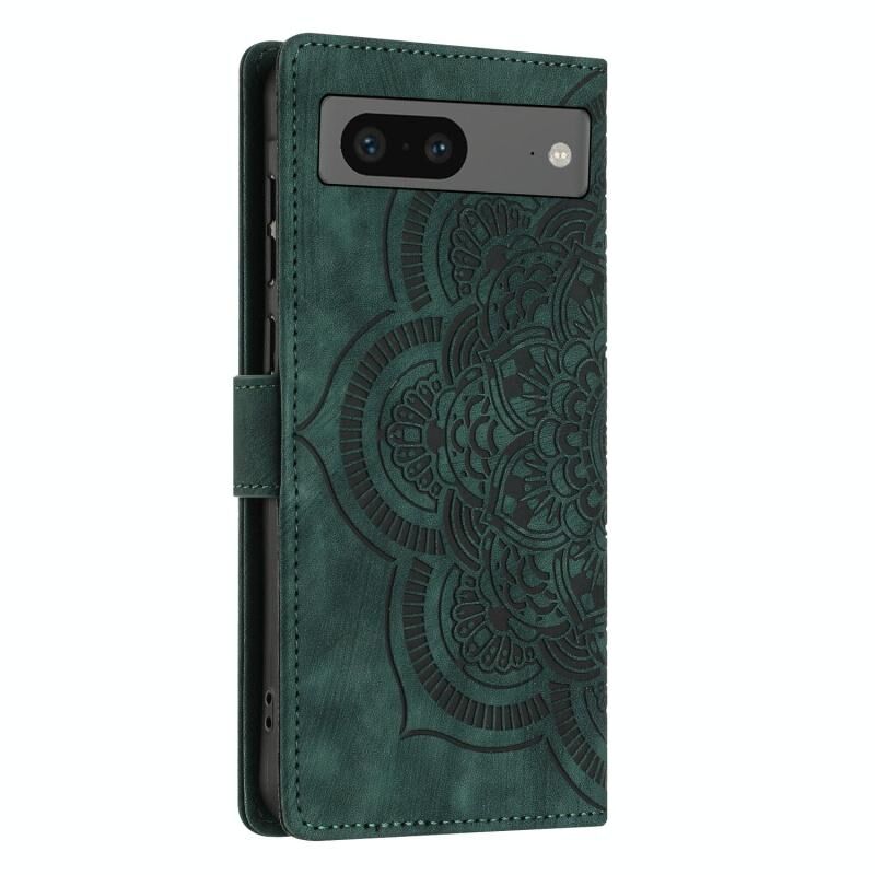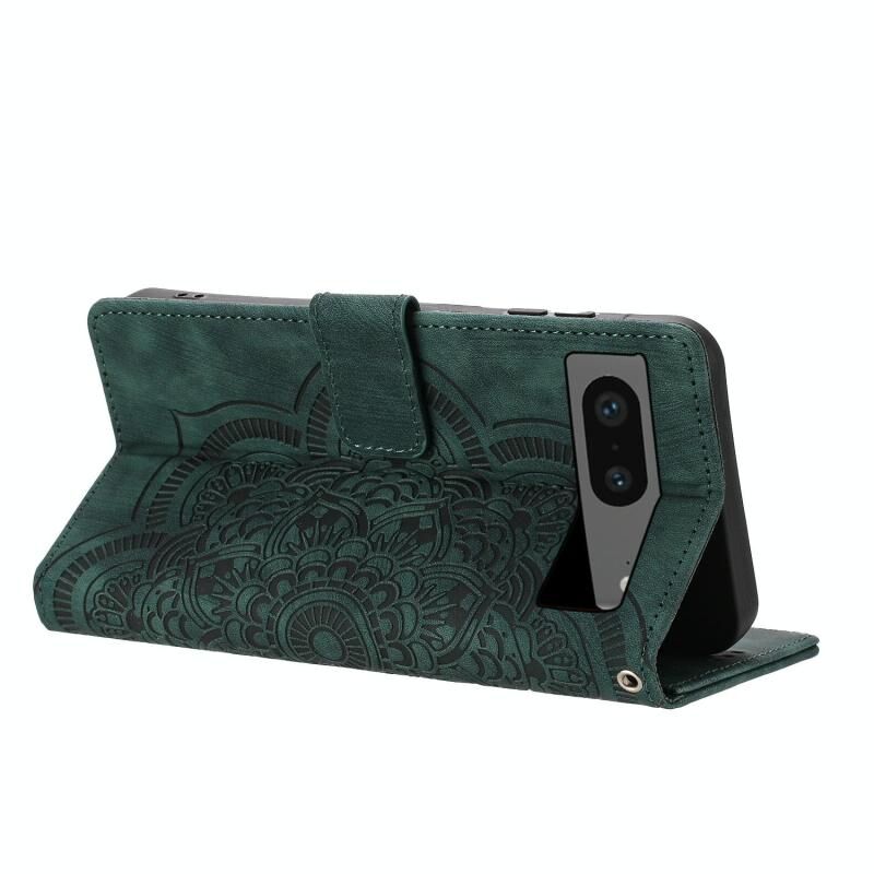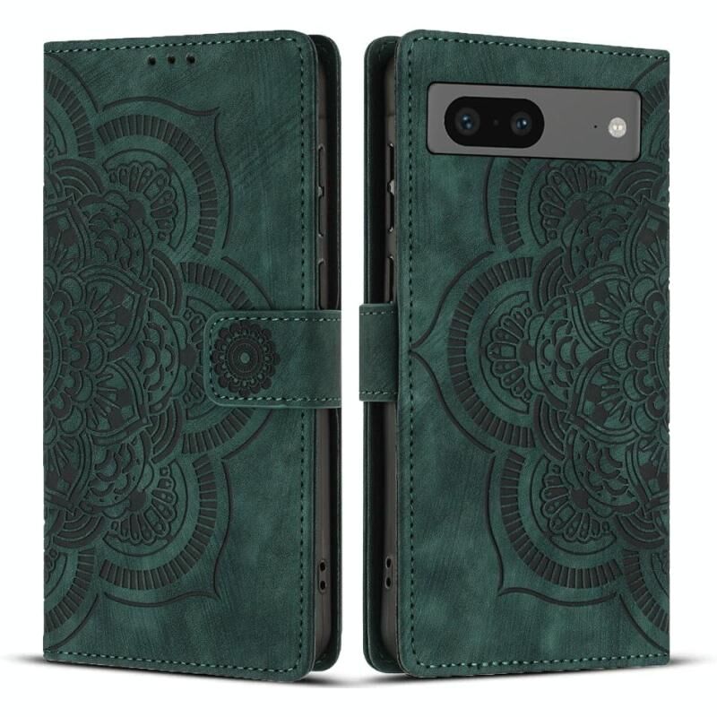 For Google Pixel 8a Mandala Embossed Retro Frosted Leather Phone Case(Green)