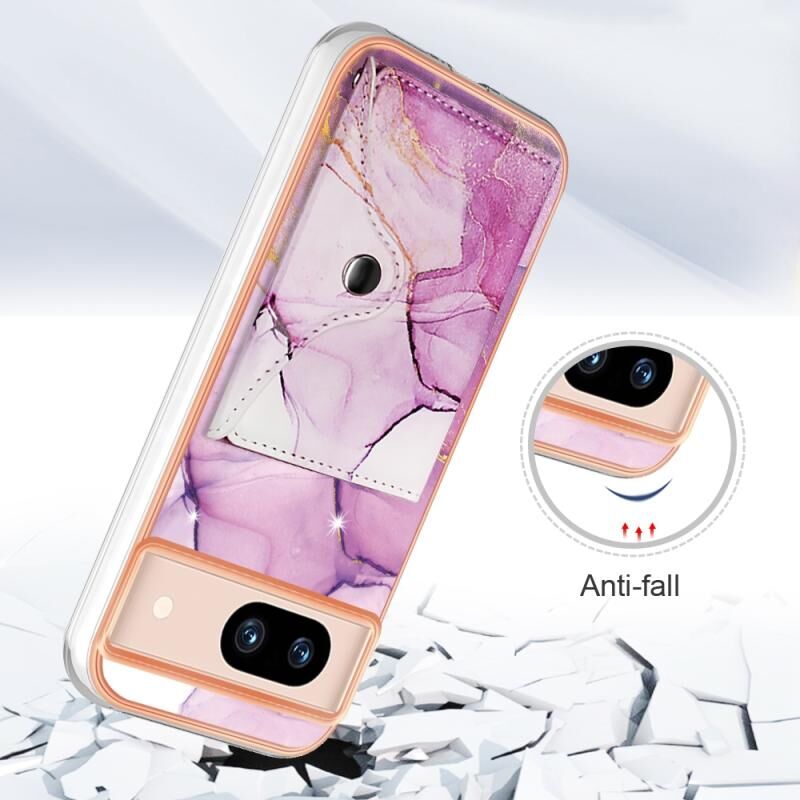 Θήκη τηλεφώνου με κάρτες IMD για Google Pixel 8a, σχέδιο μαρμάρου (Ροζ, Μωβ, Χρυσό)
