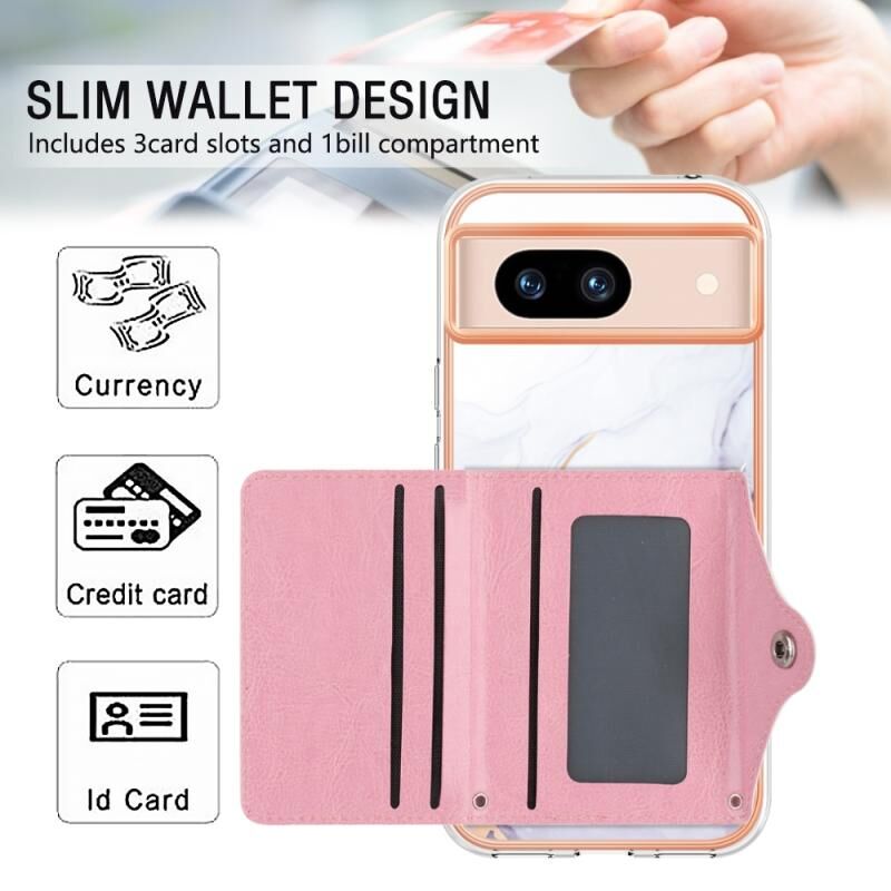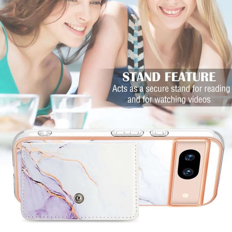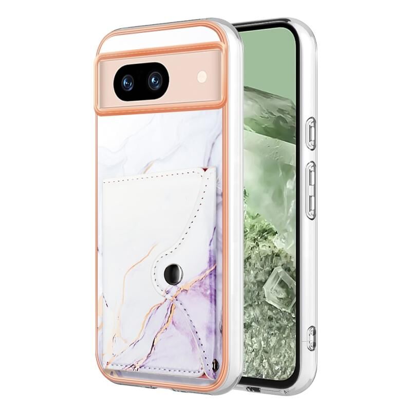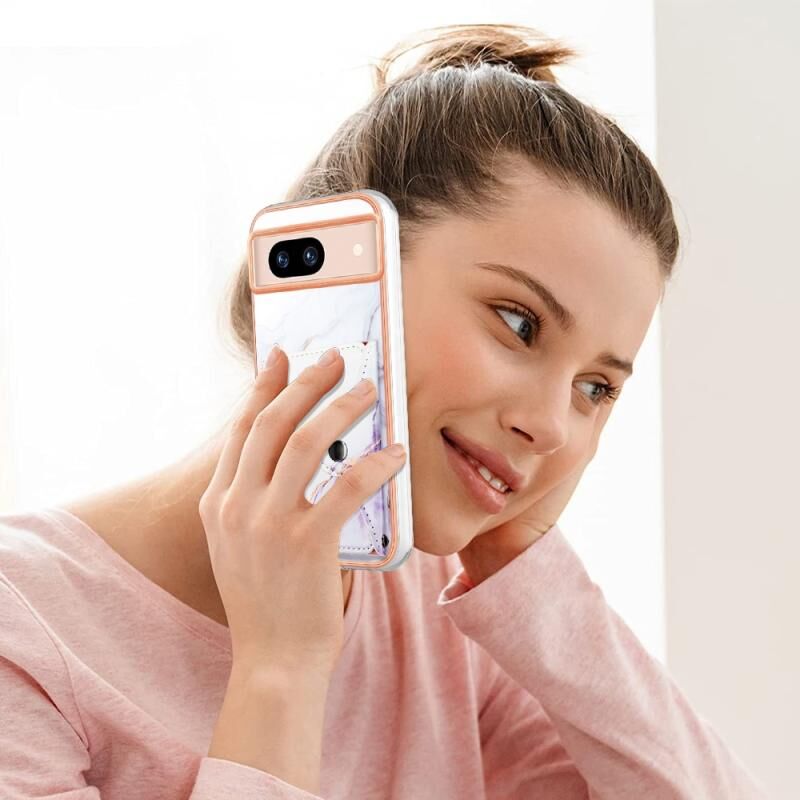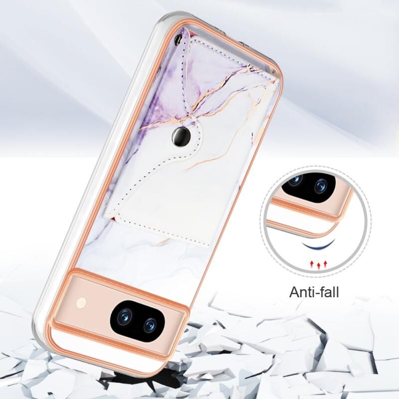Θήκη τηλεφώνου με κάρτες IMD για Google Pixel 8a, σχέδιο μαρμάρου (Ροζ, Μωβ, Χρυσό)