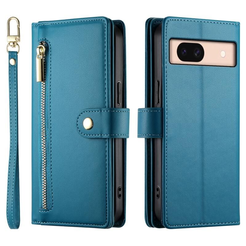 Για το Google Pixel 8a Nine Card-slot φερμουάρ τσάντα πορτοφόλι δερμάτινη θήκη τηλεφώνου (μπλε)