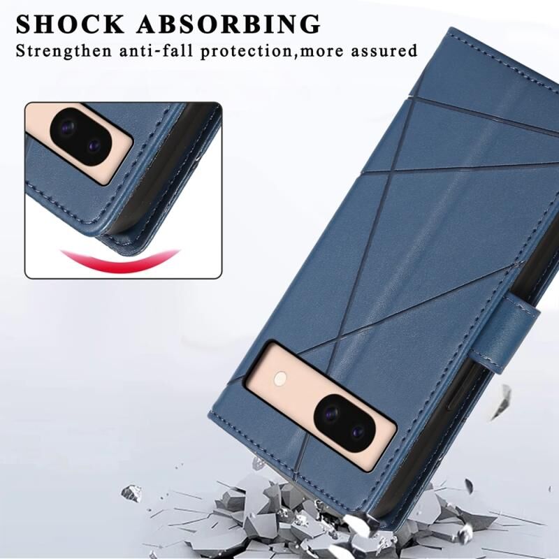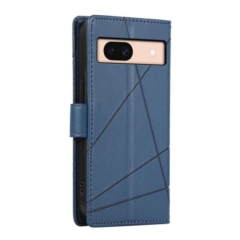 For Google Pixel 8a PU Genuine Leather Texture Embossed Line Phone Case(Blue)