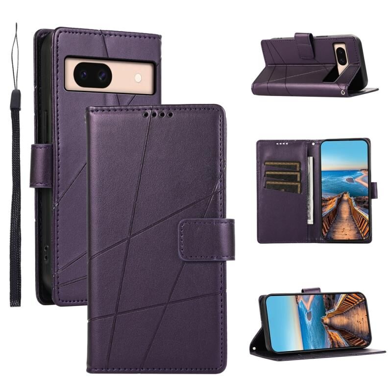 For Google Pixel 8a PU Genuine Leather Texture Embossed Line Phone Case(Purple)