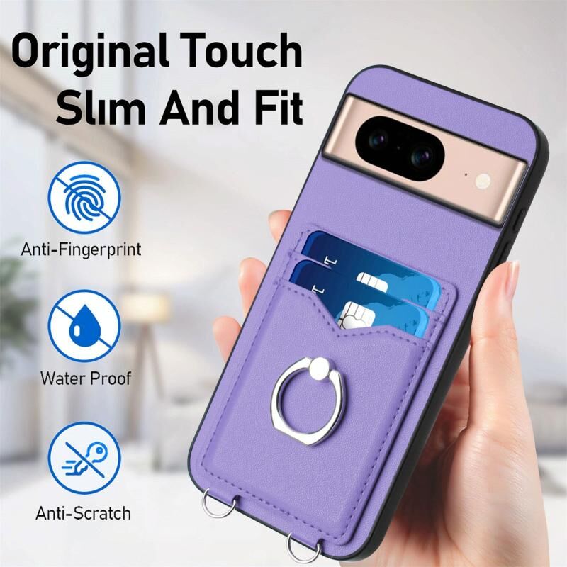 Για το Google Pixel 8a R20 Crossbody Rope Ring Card Holder τηλέφωνο υπόθεση (μωβ)