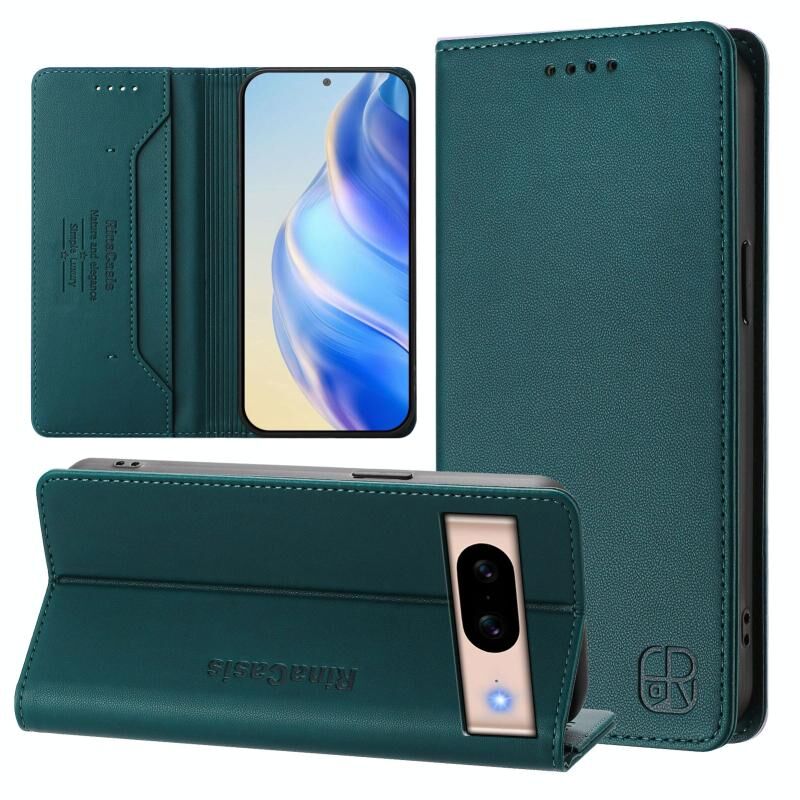 For Google Pixel 8a RC01 Dual-Folded Magnetic Suction RFID Leather Phone Case(Dark Green)