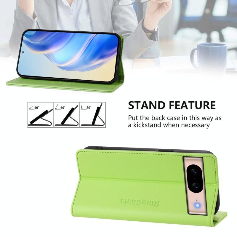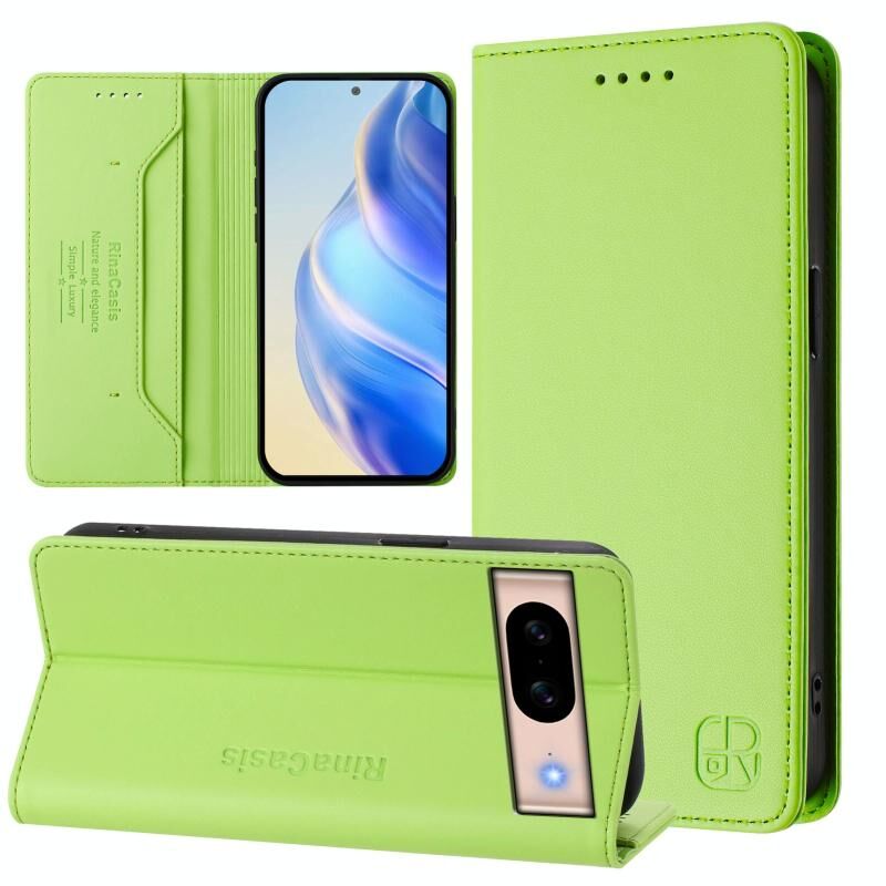 For Google Pixel 8a RC01 Dual-Folded Magnetic Suction RFID Leather Phone Case(Grass Green)